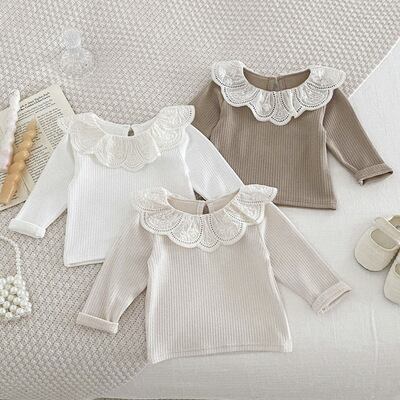 春秋の季節にぴったりな赤ちゃん用のハスの襟トップスが新登場です!韓国版のスタイリッシュなデザインが特徴で、可愛らしいハスの葉の襟がアクセントとなります。日常のコーディネートや特別なお出かけに最適なアイテムです。